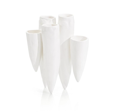 Enhance your interior space with this sculpture inspired by natural rock formations. The Stalactite Cluster Sculpture is crafted from pure porcelain in a white finish and showcases a large collection of pointed stones, introducing an alluring artistic element to an interior décor.