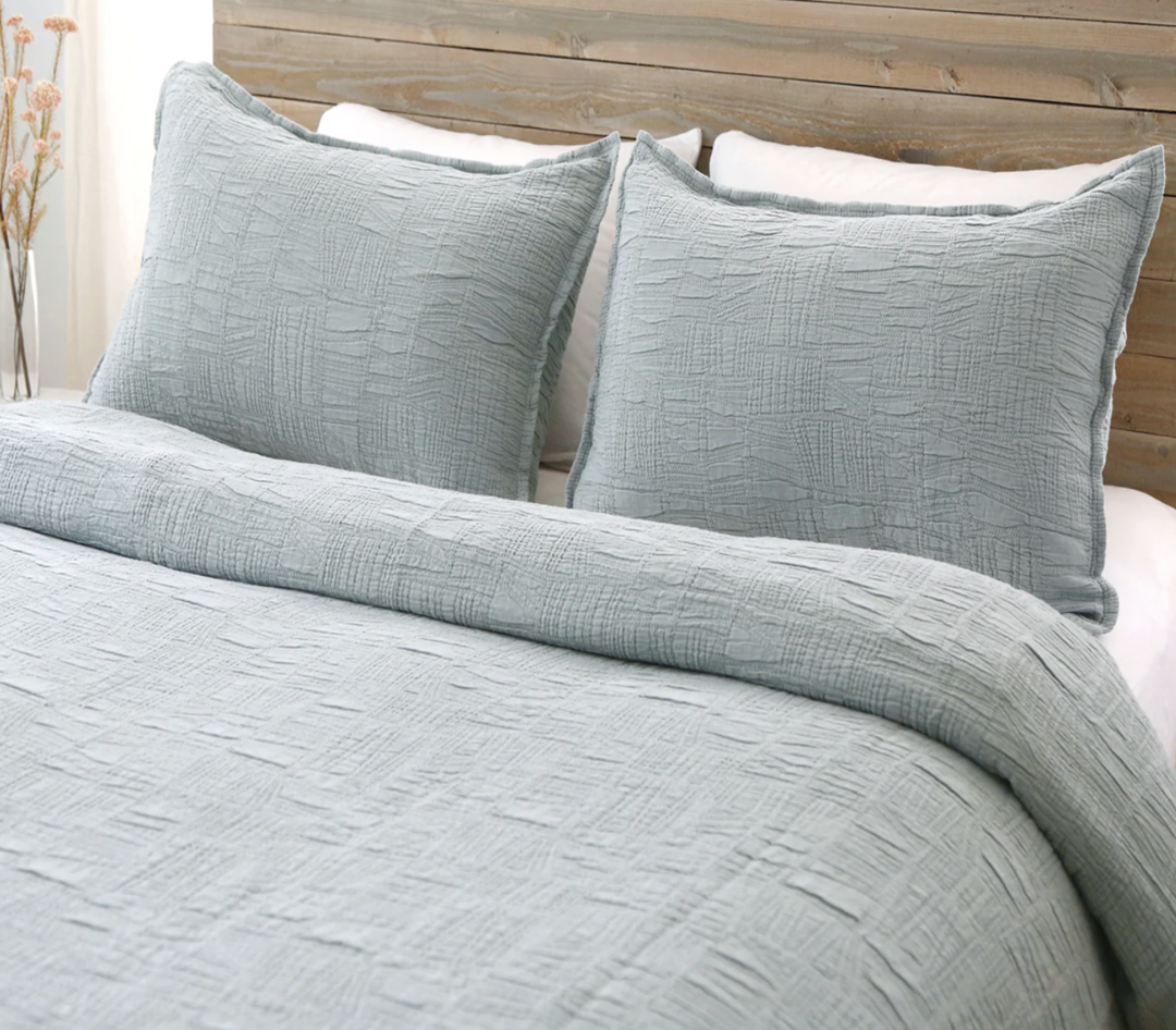 Crafted in Portugal, the Harbour features an abstract, geometric weave making it a modern matelasse. The matelasse achieves a beautiful texture without any batting.
